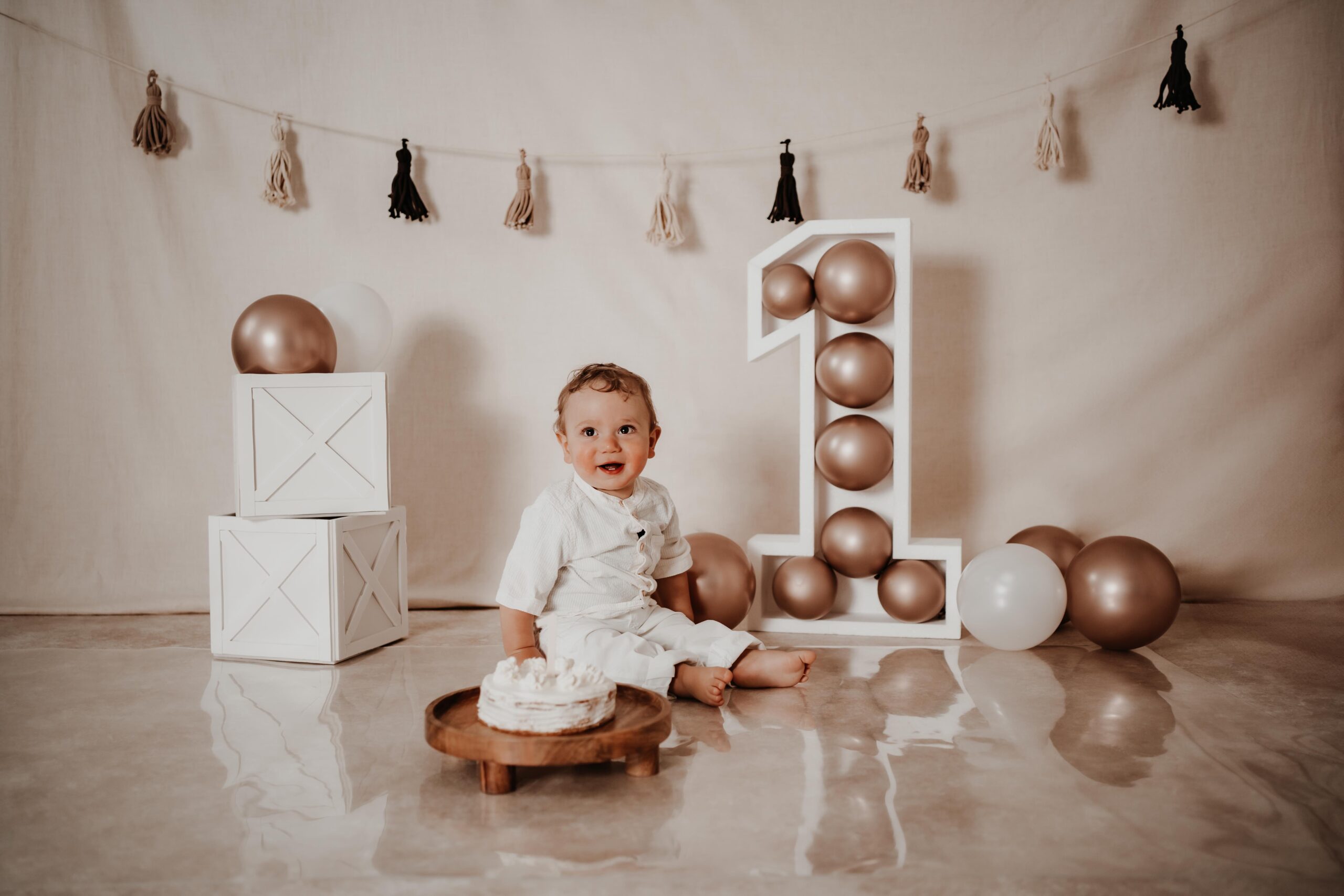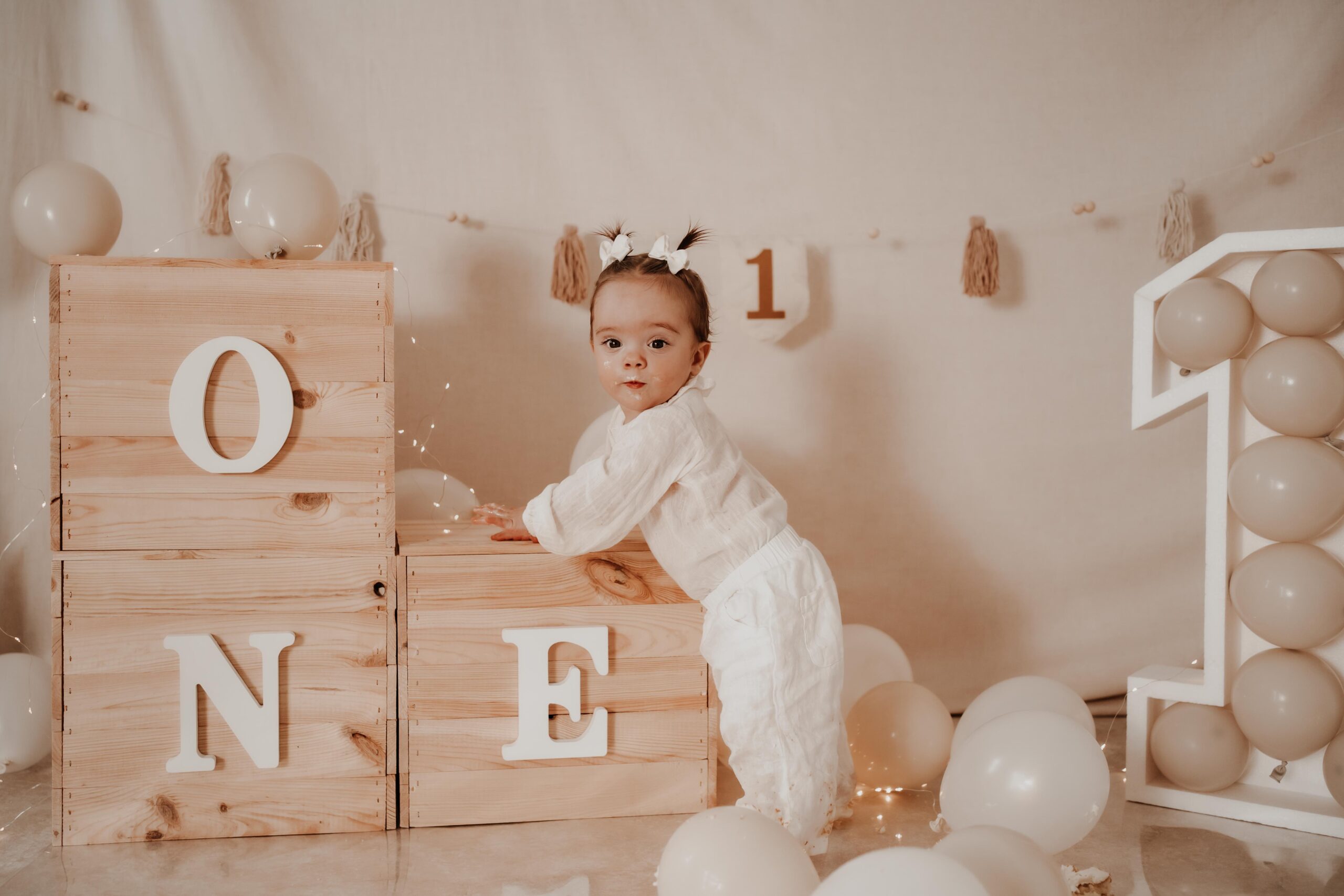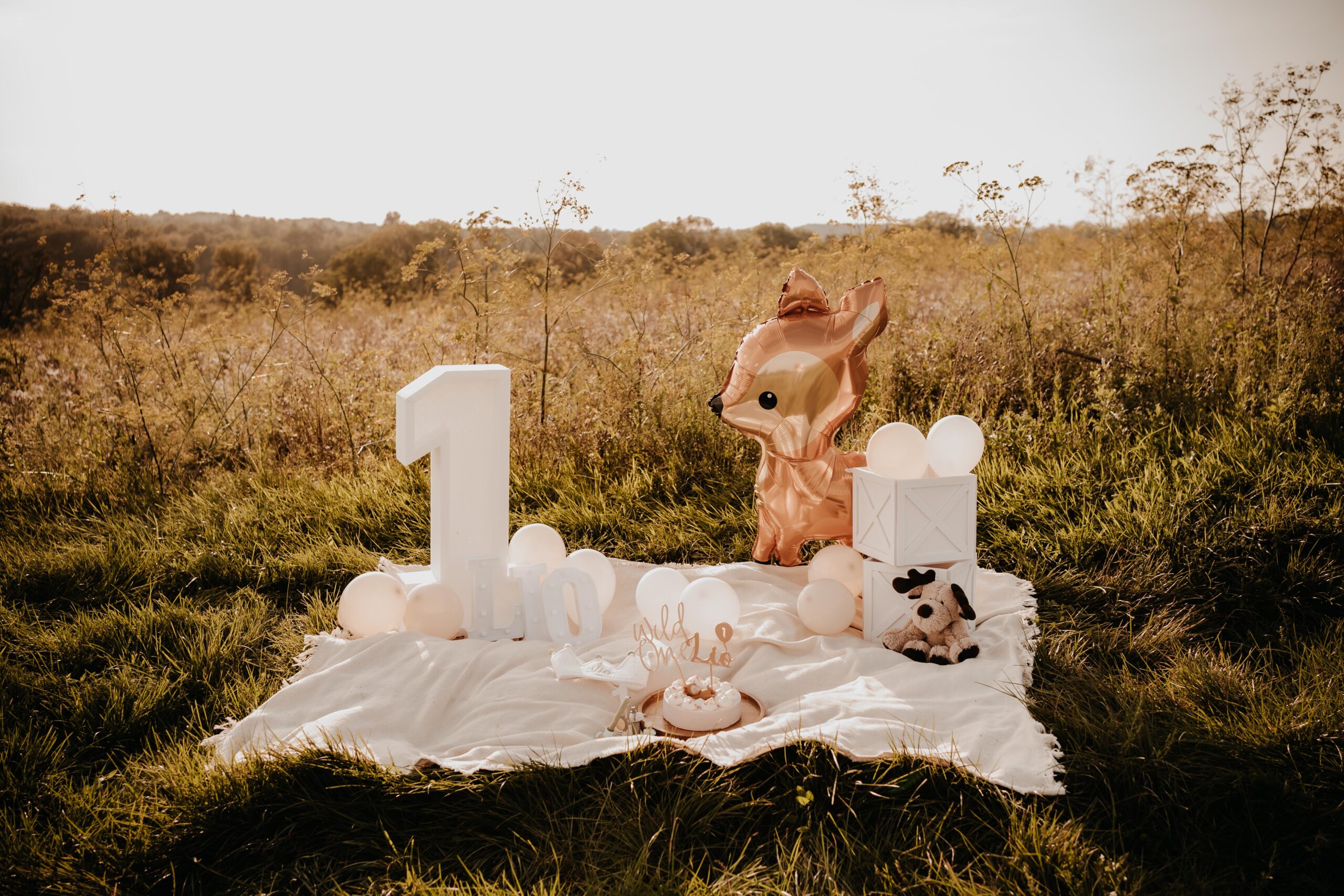 Für das 1. Geburtstagsshooting habe ich eine Vielzahl von Requisiten und Dekorationen (Caketopper, Tortenplatte etc.), darunter Luftballons in verschiedenen Farben und passende Outfits für Einjährige. Bitte teilt mir im Vorfeld eure Wünsche mit, damit ich alles nach euren Vorstellungen gestalten kann.