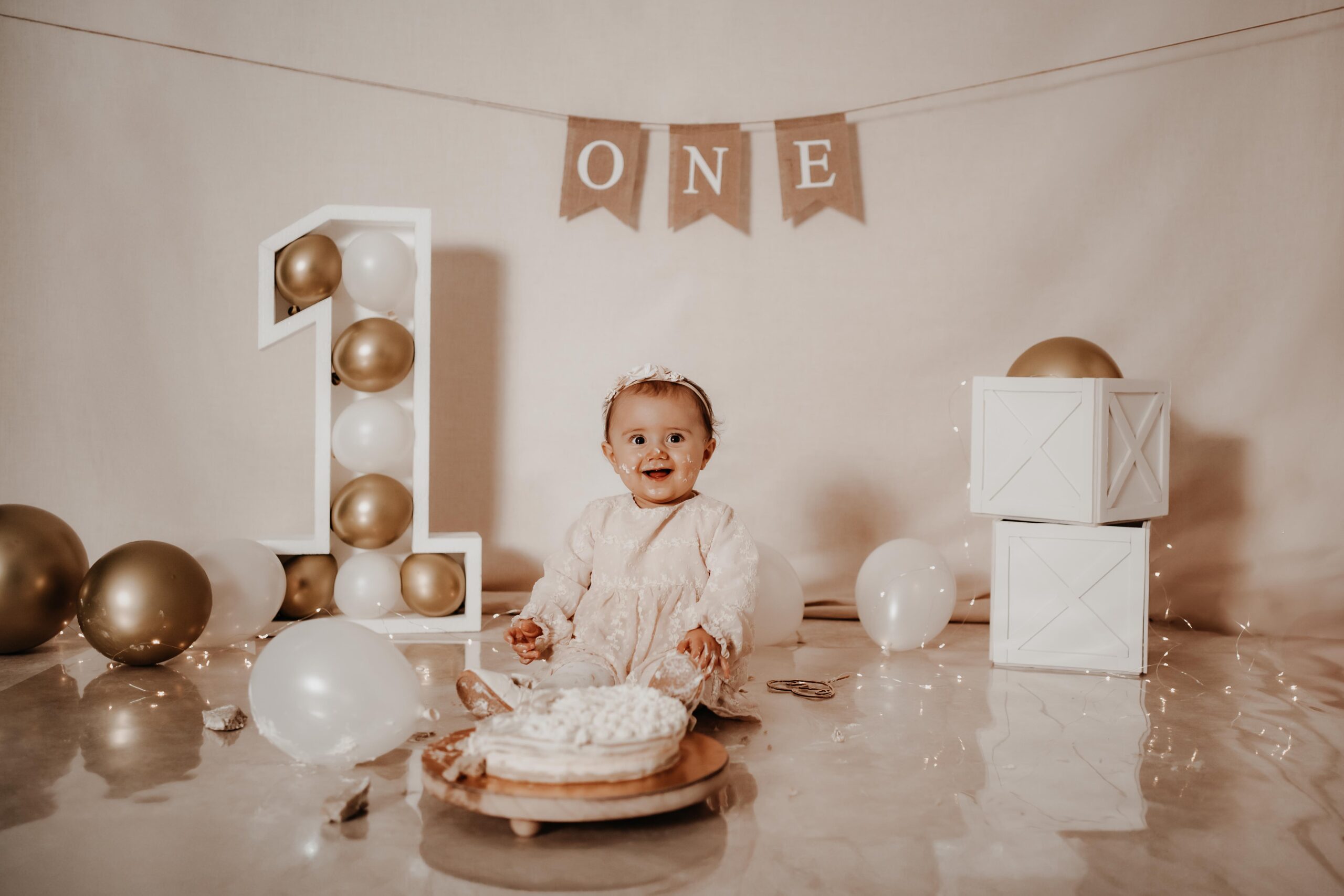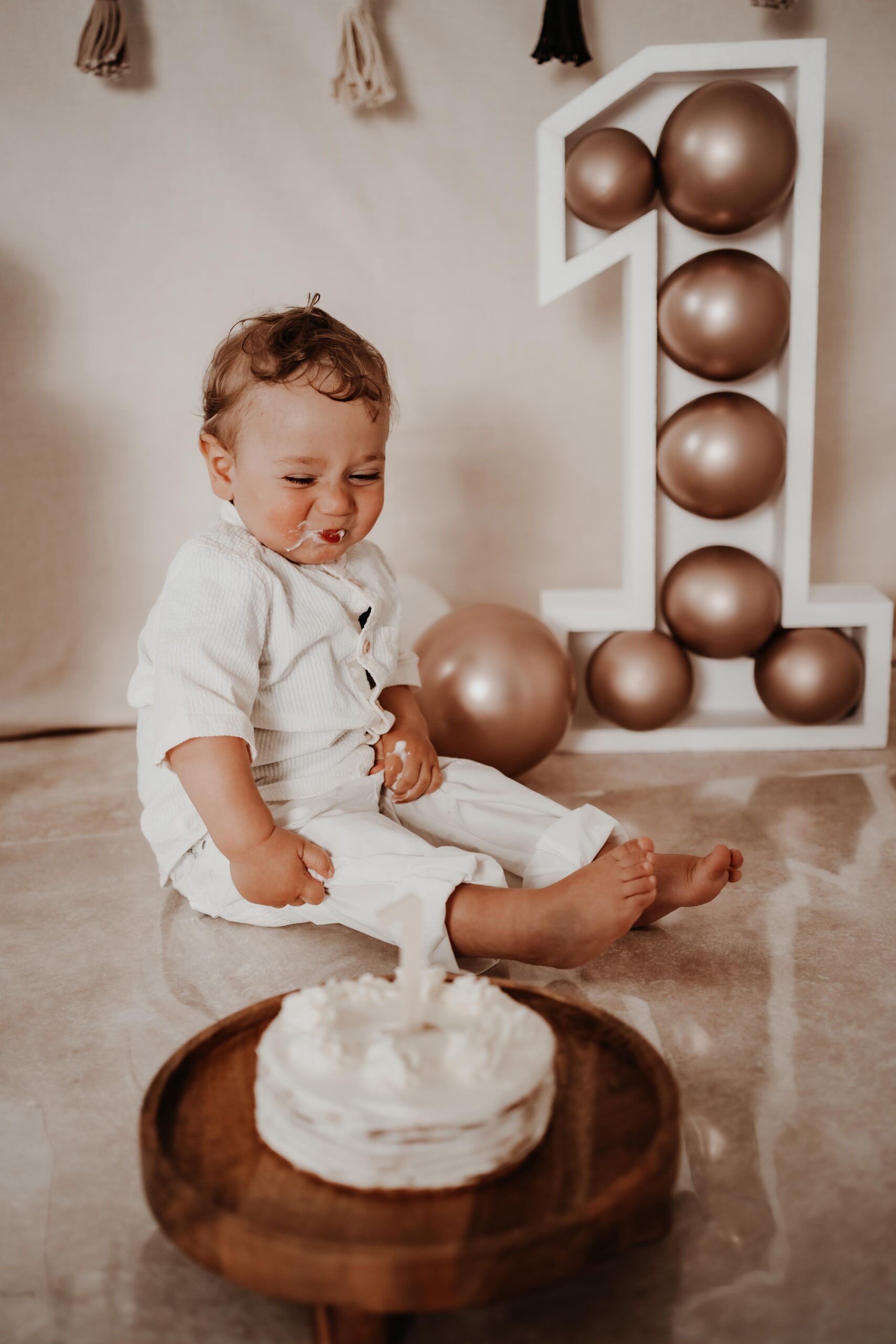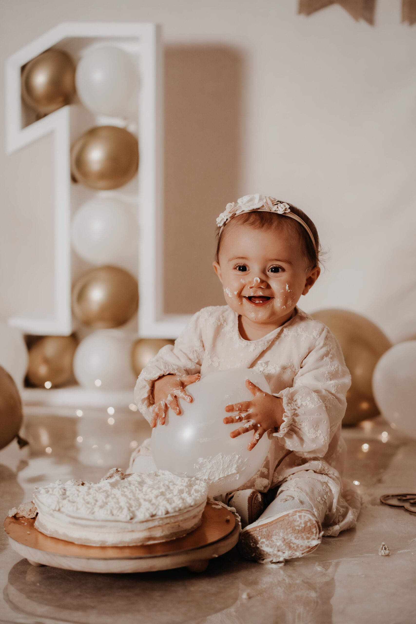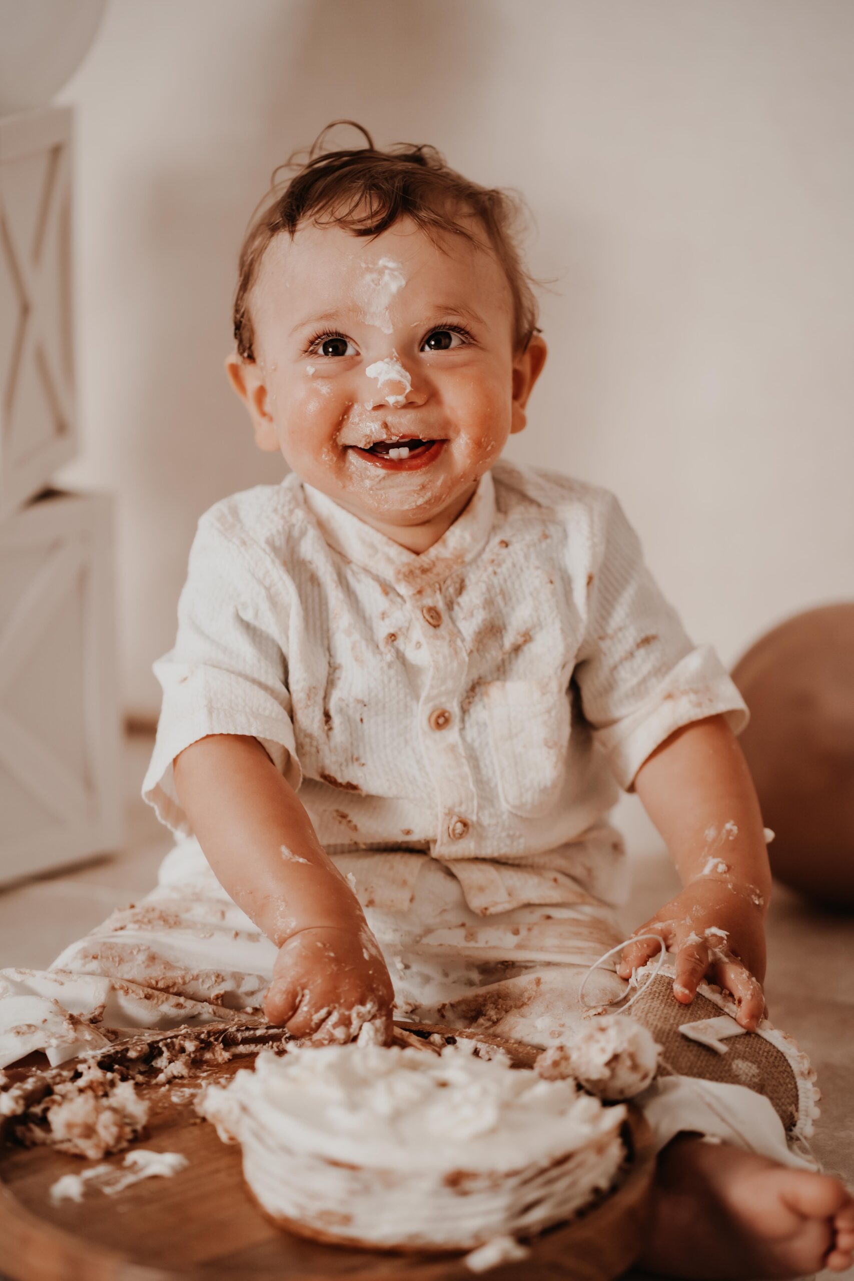Bei einem Cake Smash darf das 1-Jährige die Torte so richtig smashen, während ich diese süße Momente fotografisch festhalte.