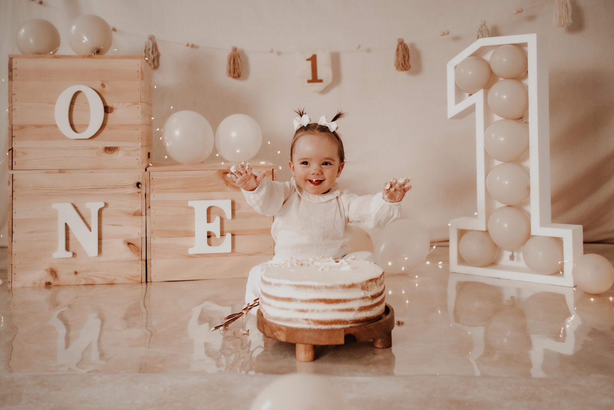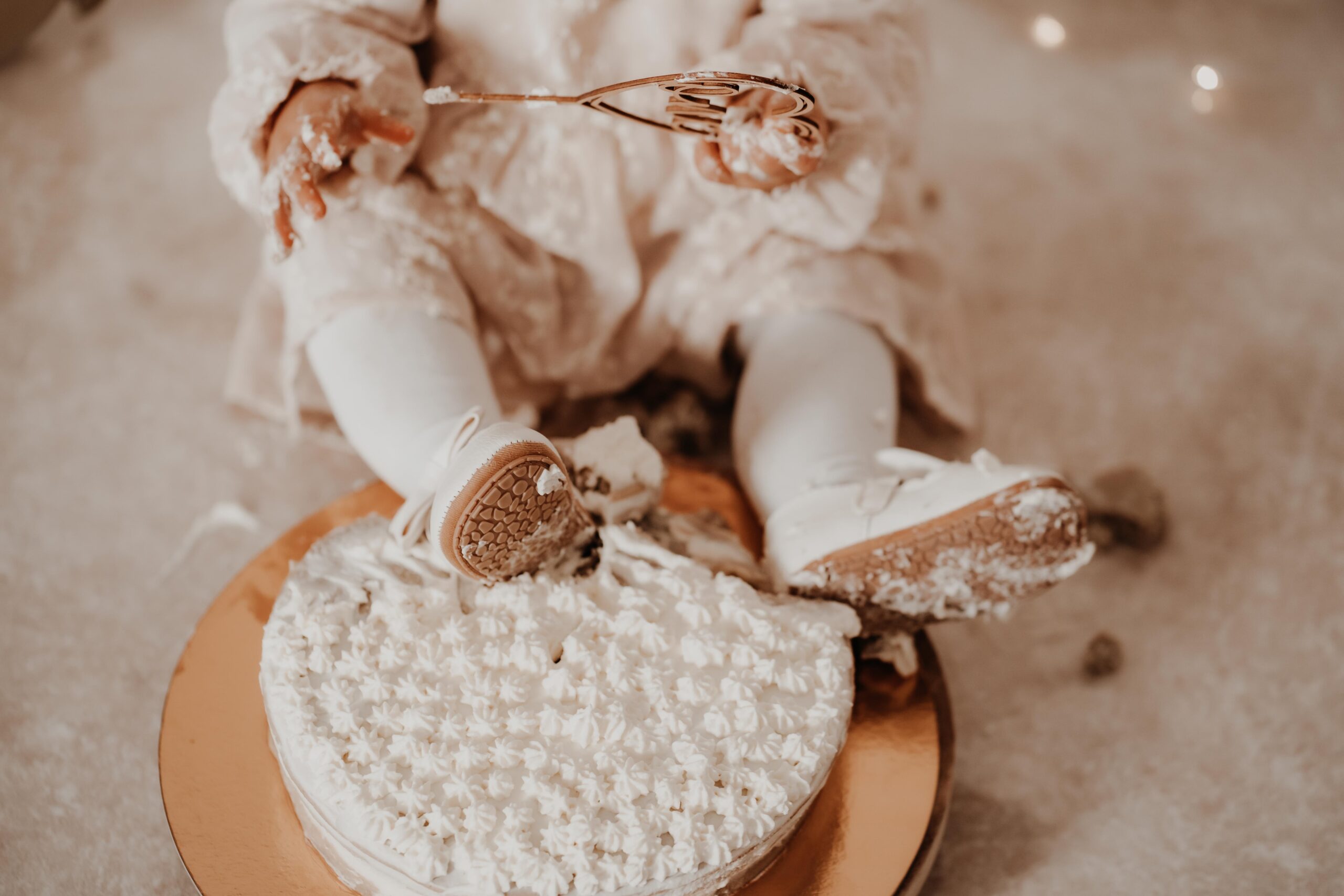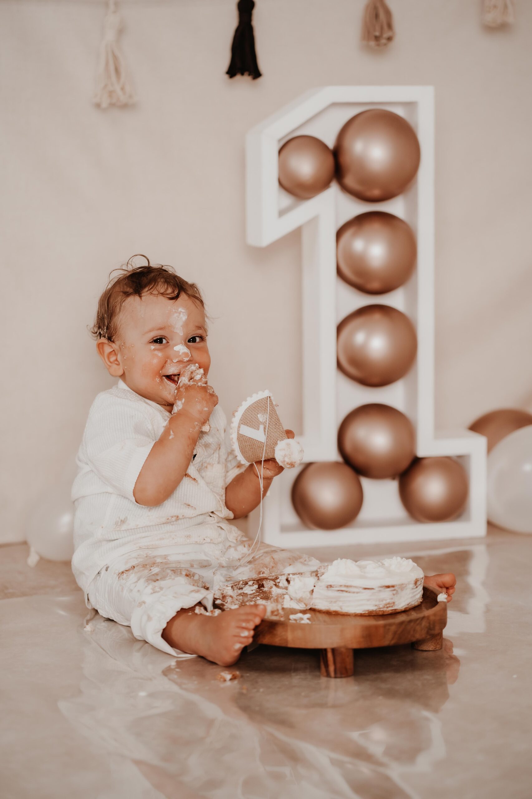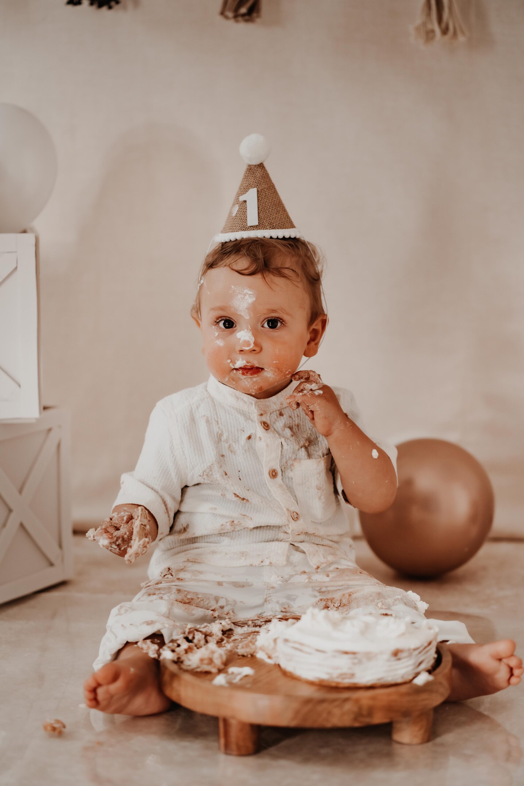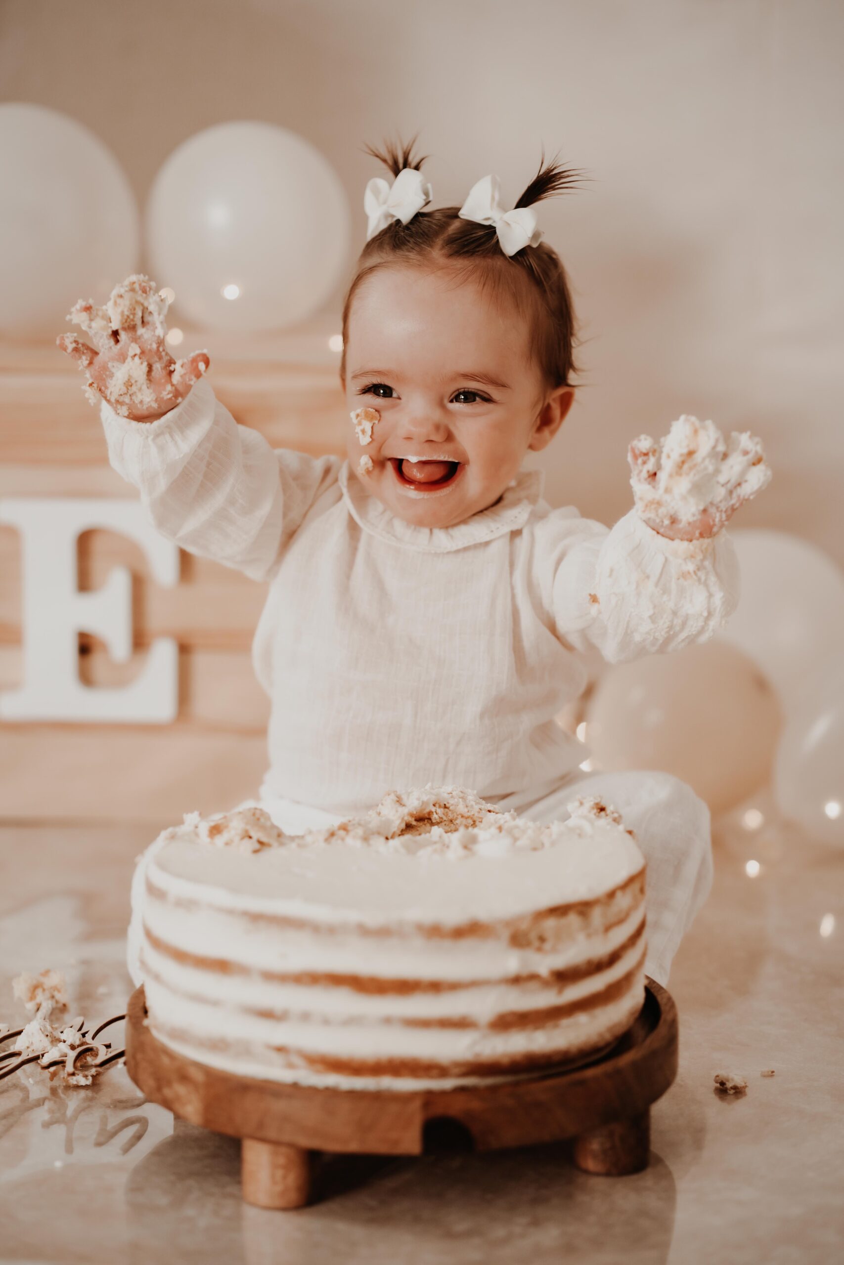 Bei einem Cake Smash darf das 1-Jährige die Torte so richtig smashen, während ich diese süße Momente fotografisch festhalte.